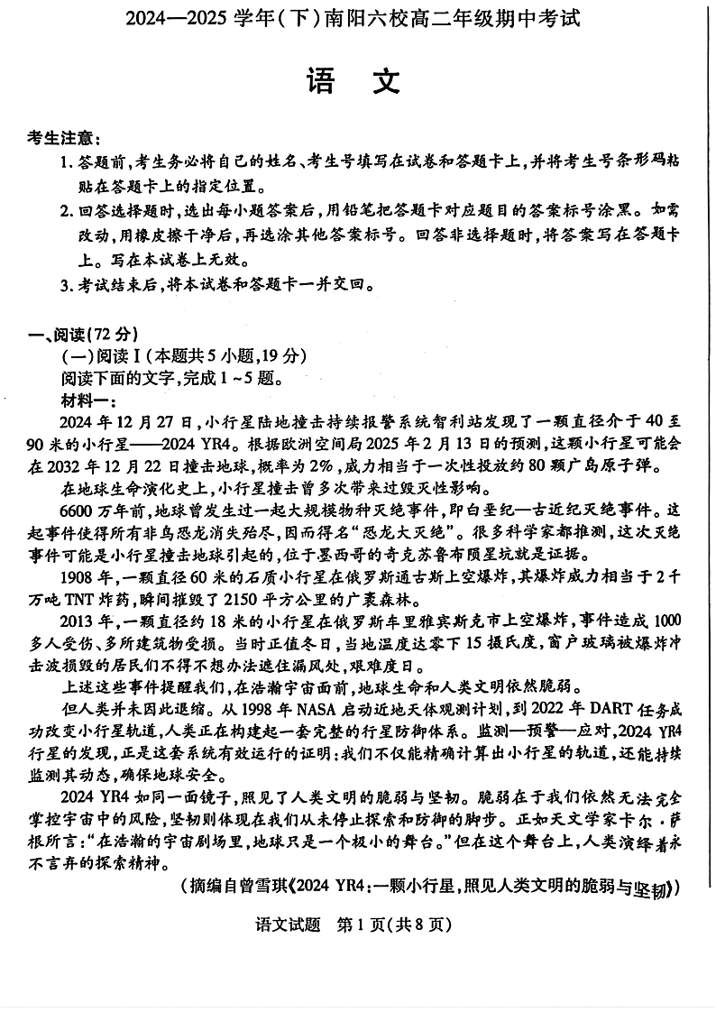 河南省2024-2025学年(下)南阳六校高二年级期中考试 语文.pdf
