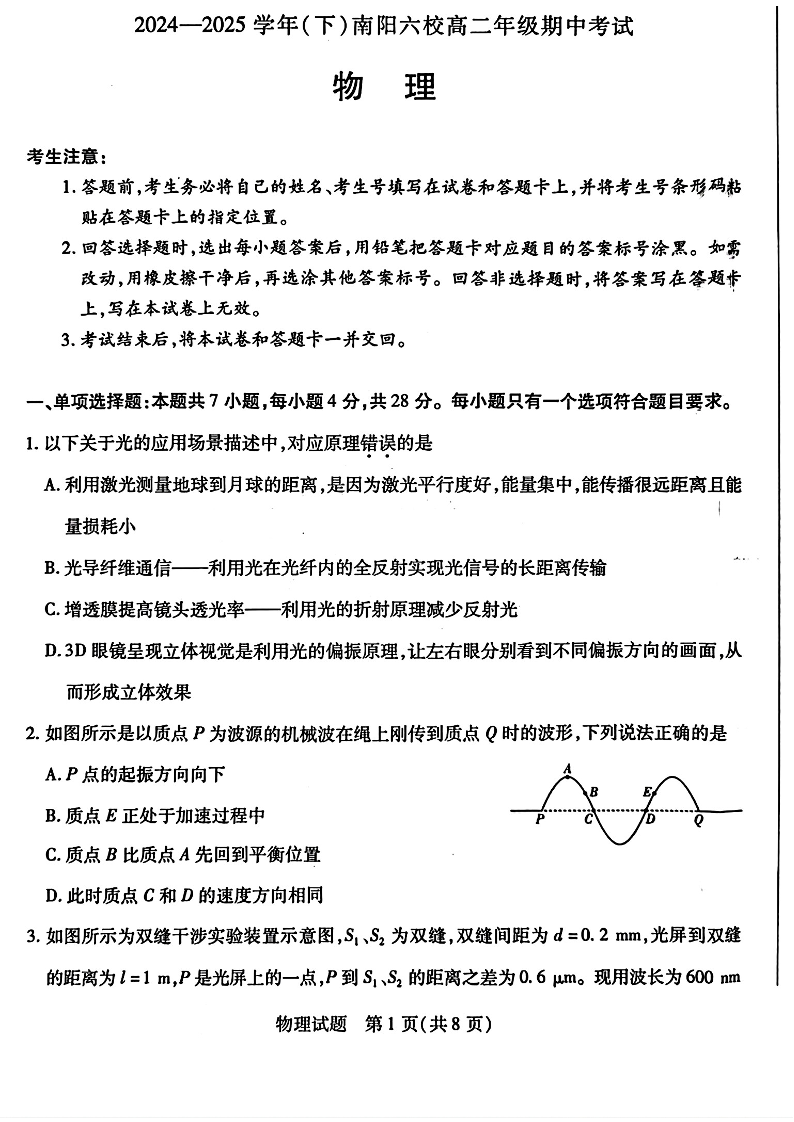 河南省2024-2025学年(下)南阳六校高二年级期中考试 物理.pdf