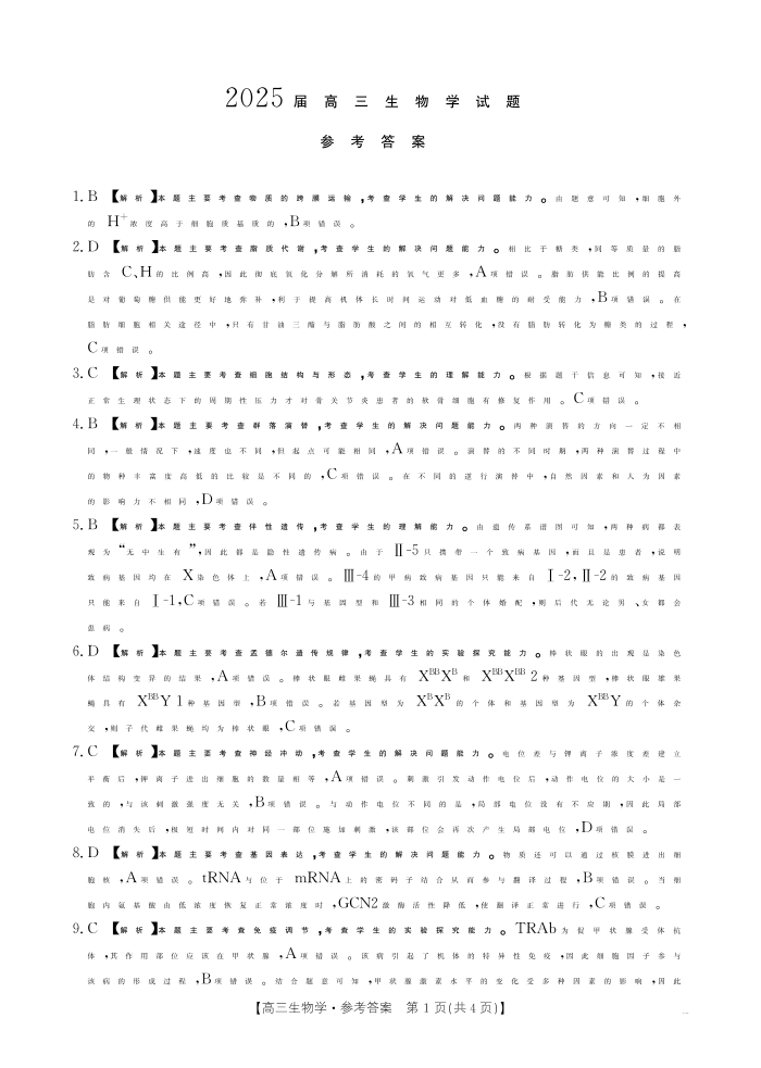 四川省部分学校2025届高三下学期4月联考 生物答案.pdf