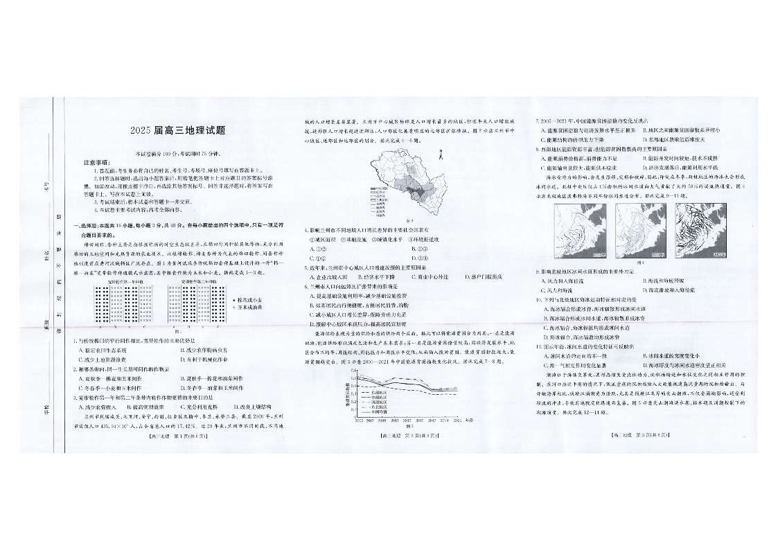 四川省部分学校2025届高三下学期4月联考 地理.pdf