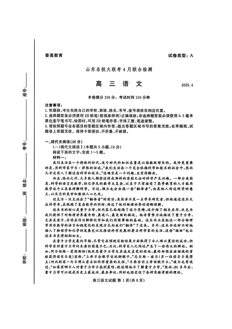 山东名校大联考2025届高三4月校际联合检测 语文.pdf