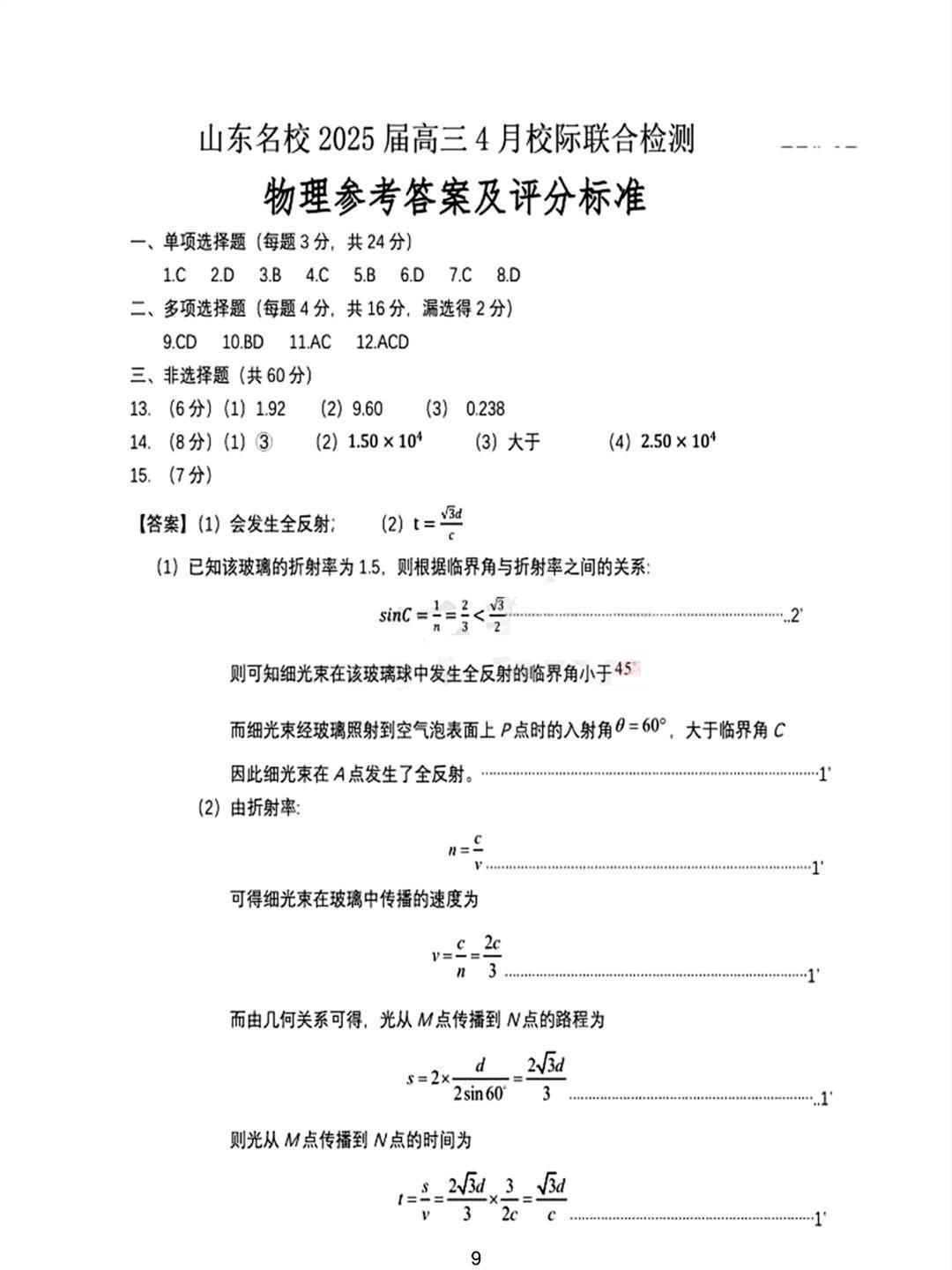山东名校大联考2025届高三4月校际联合检测 物理答案.pdf