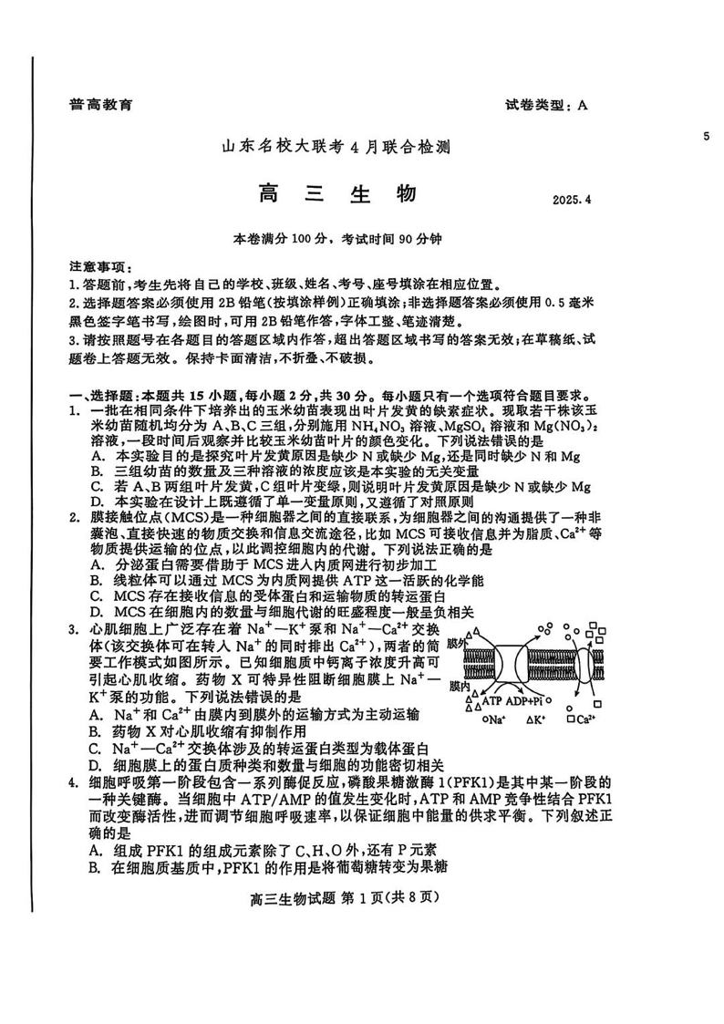 山东名校大联考2025届高三4月校际联合检测 生物.pdf