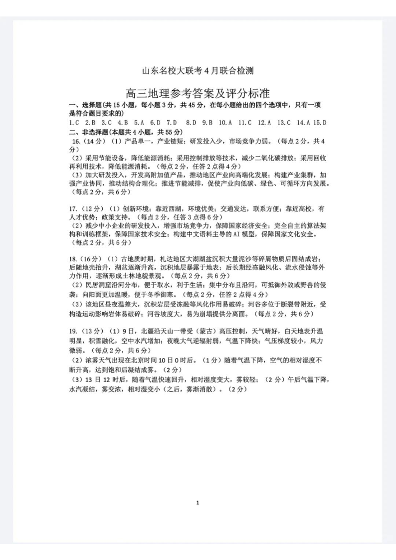 山东名校大联考2025届高三4月校际联合检测 地理答案.pdf