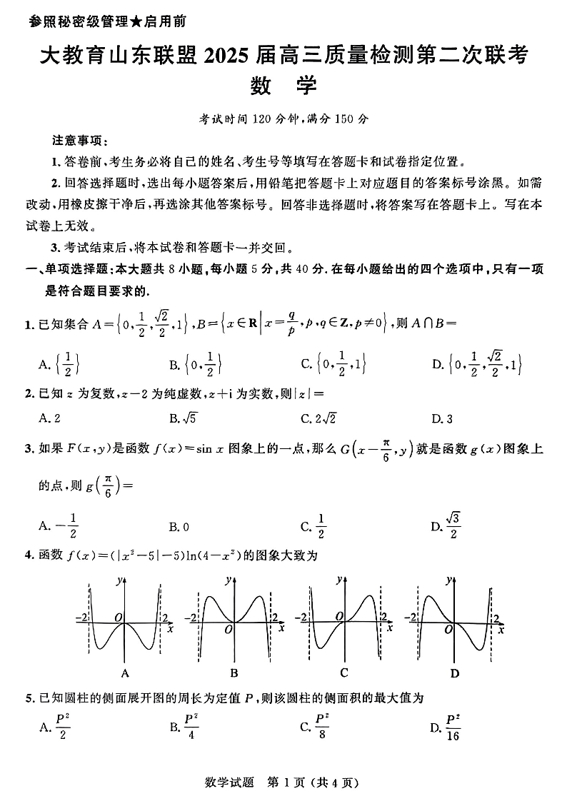 大教育山东联盟2025届高三质量检测第二次联考 数学.pdf