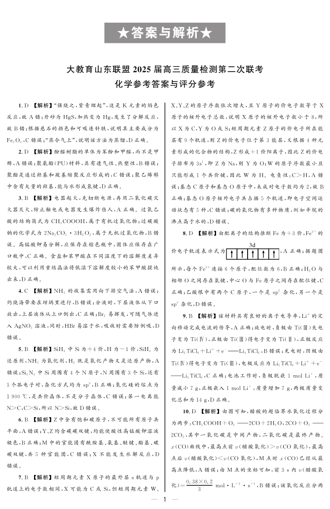 大教育山东联盟2025届高三质量检测第二次联考 化学答案.pdf