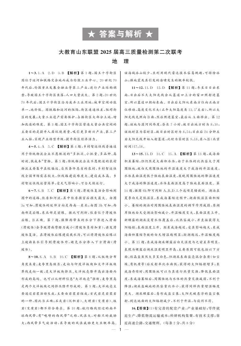 大教育山东联盟2025届高三质量检测第二次联考 地理答案.pdf