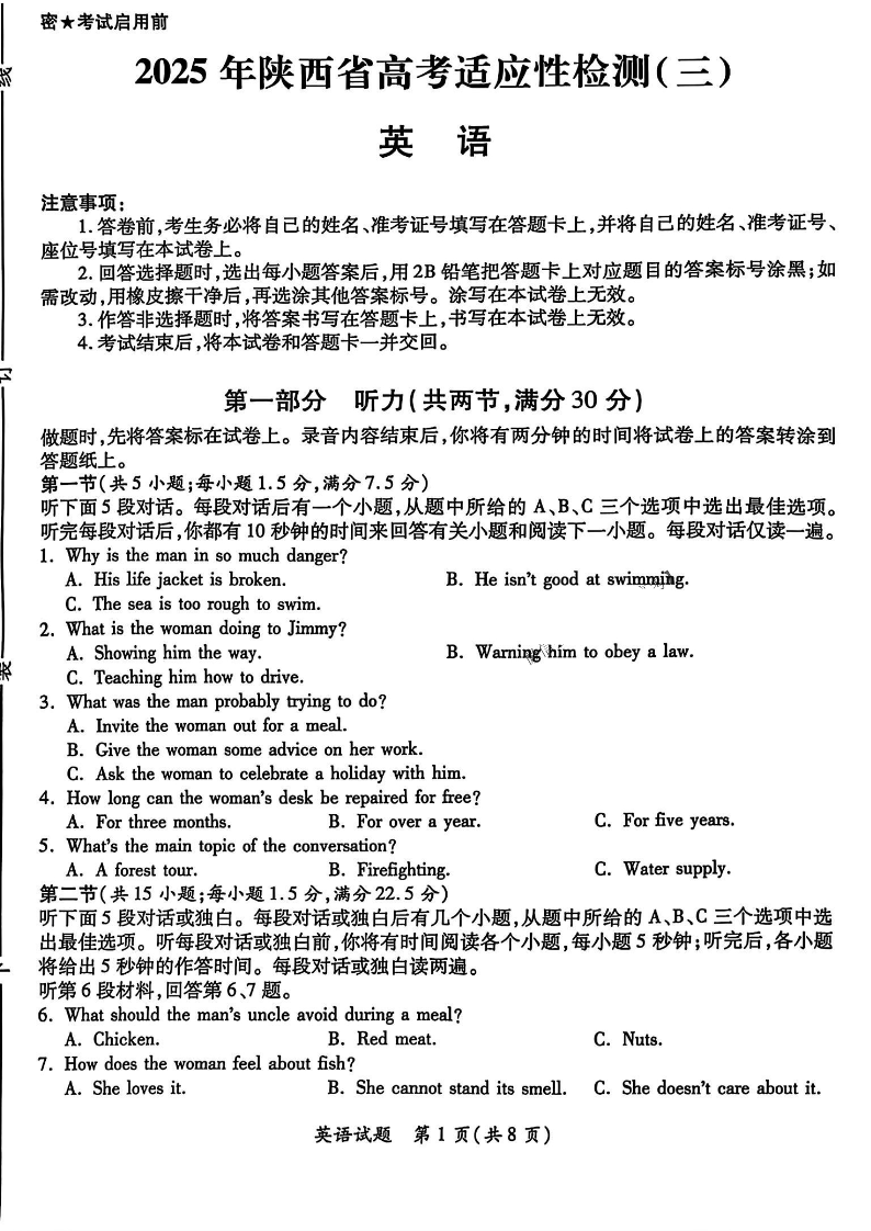2025年陕西省高考适应性检测(三)英语(含答案).pdf