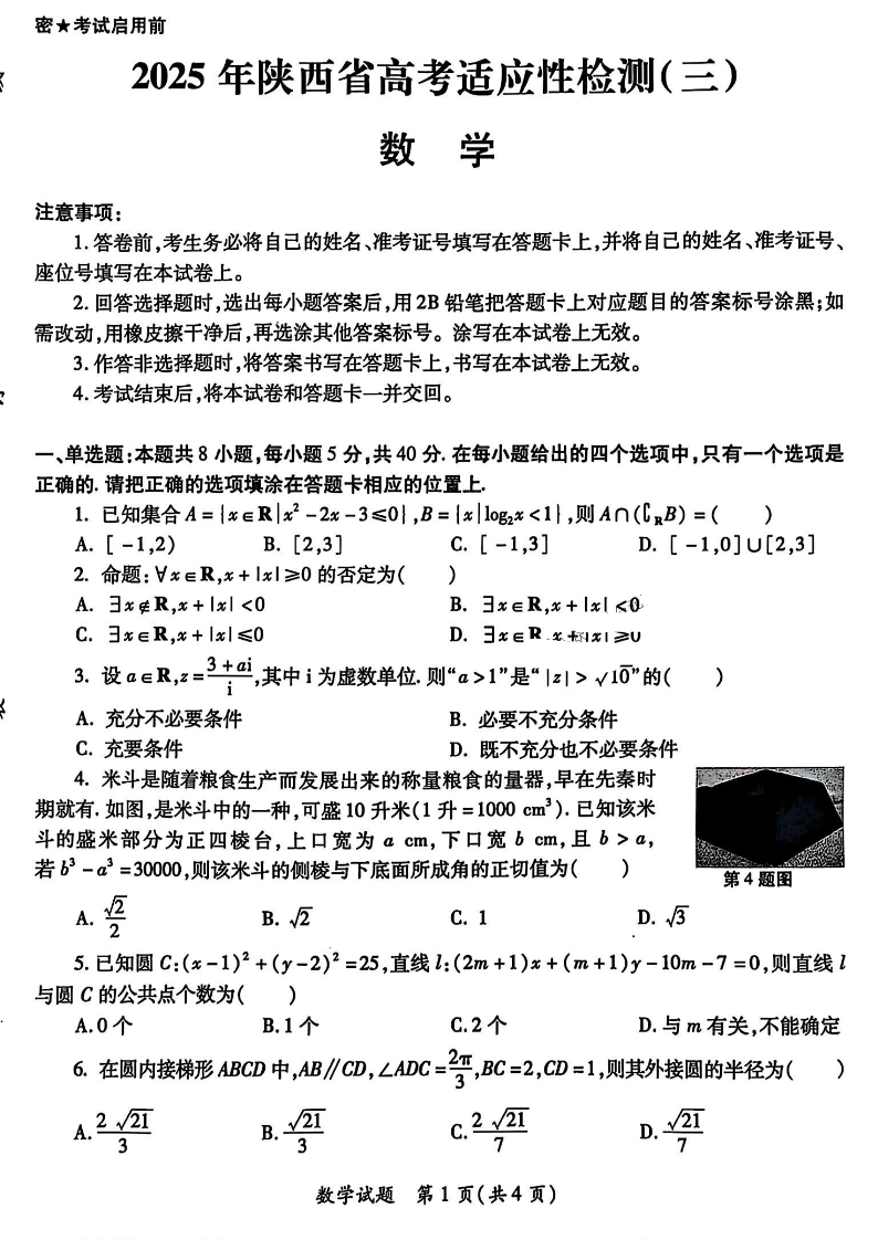 2025年陕西省高考适应性检测(三)数学(含答案).pdf