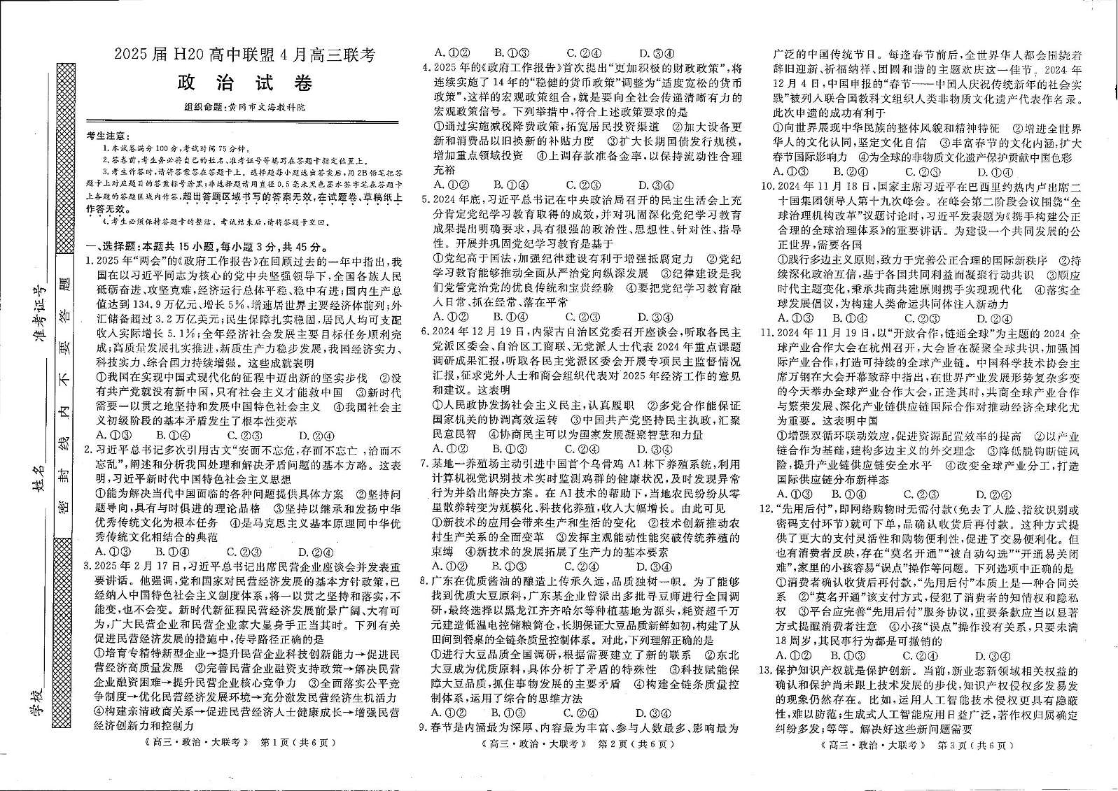 河南省2025届H20高中联盟4月高三联考 政治.pdf