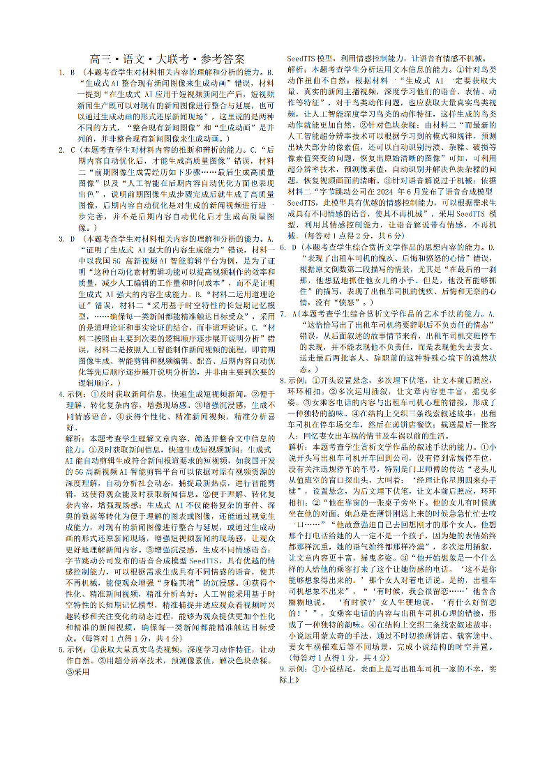 河南省2025届H20高中联盟4月高三联考 语文答案.pdf