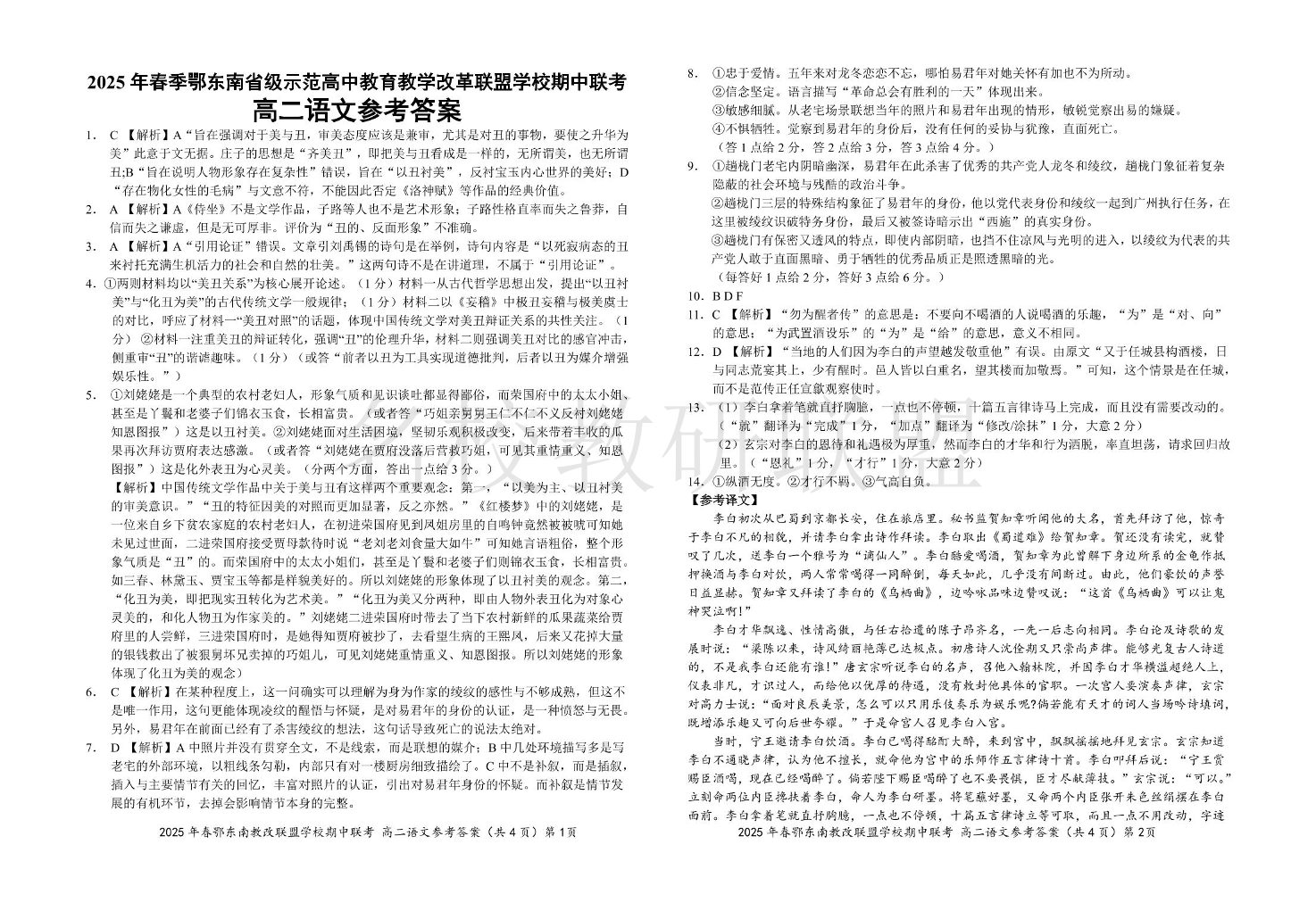 2025年春季湖北省鄂东南省级示范高中高二下学期4月期中联考 语文答案.pdf