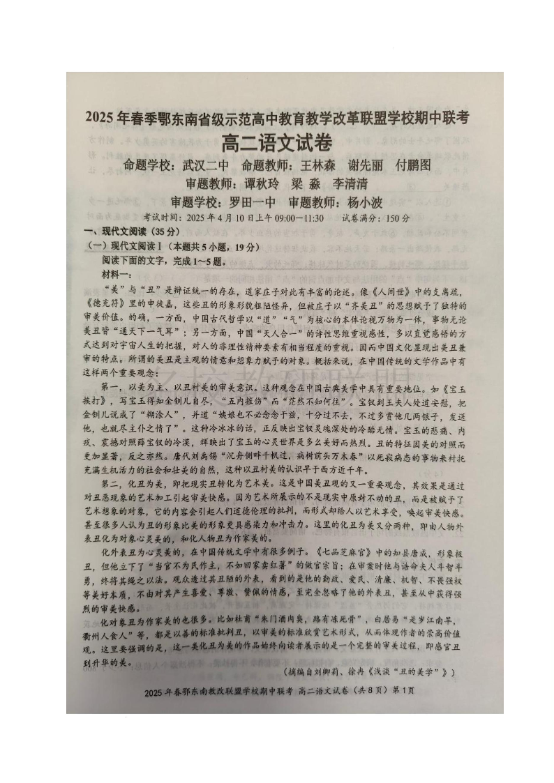 2025年春季湖北省鄂东南省级示范高中高二下学期4月期中联考 语文.pdf