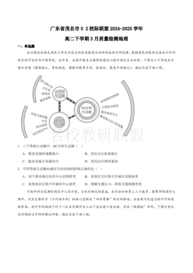 广东省茂名市5+2校际联盟2024-2025学年高二质量检测 地理(含答案).pdf