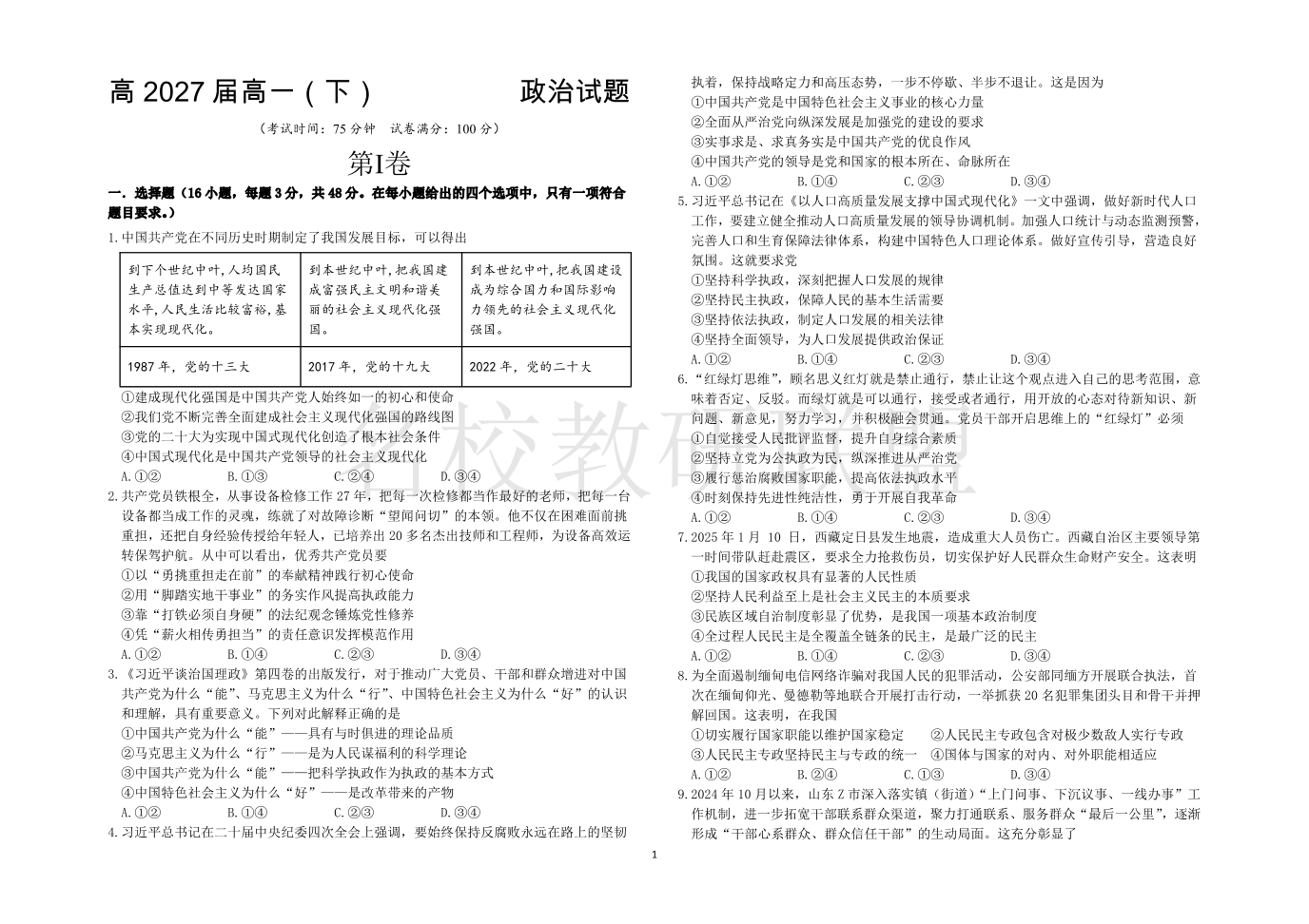 四川省达州市万源中学2024-2025学年高一下学期期中考试 政治.pdf