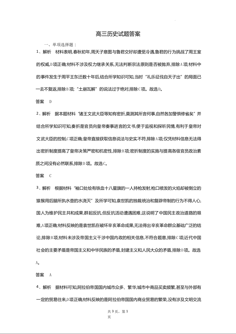 湖北省部分高中协作体2024-2025学年高三下学期4月期中联考 历史答案.docx