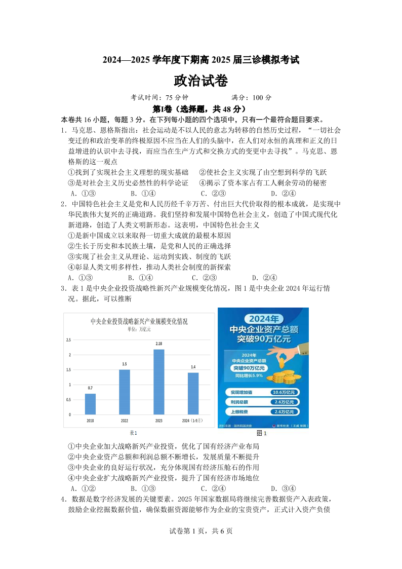 四川省成都市第七中学2024~2025学年度下期高2025届三诊模拟考试 政治.pdf