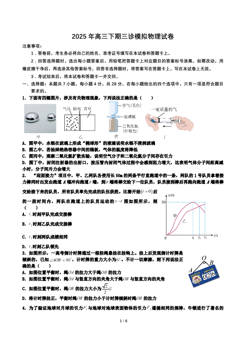 四川省成都市第七中学2024~2025学年度下期高2025届三诊模拟考试 物理.pdf