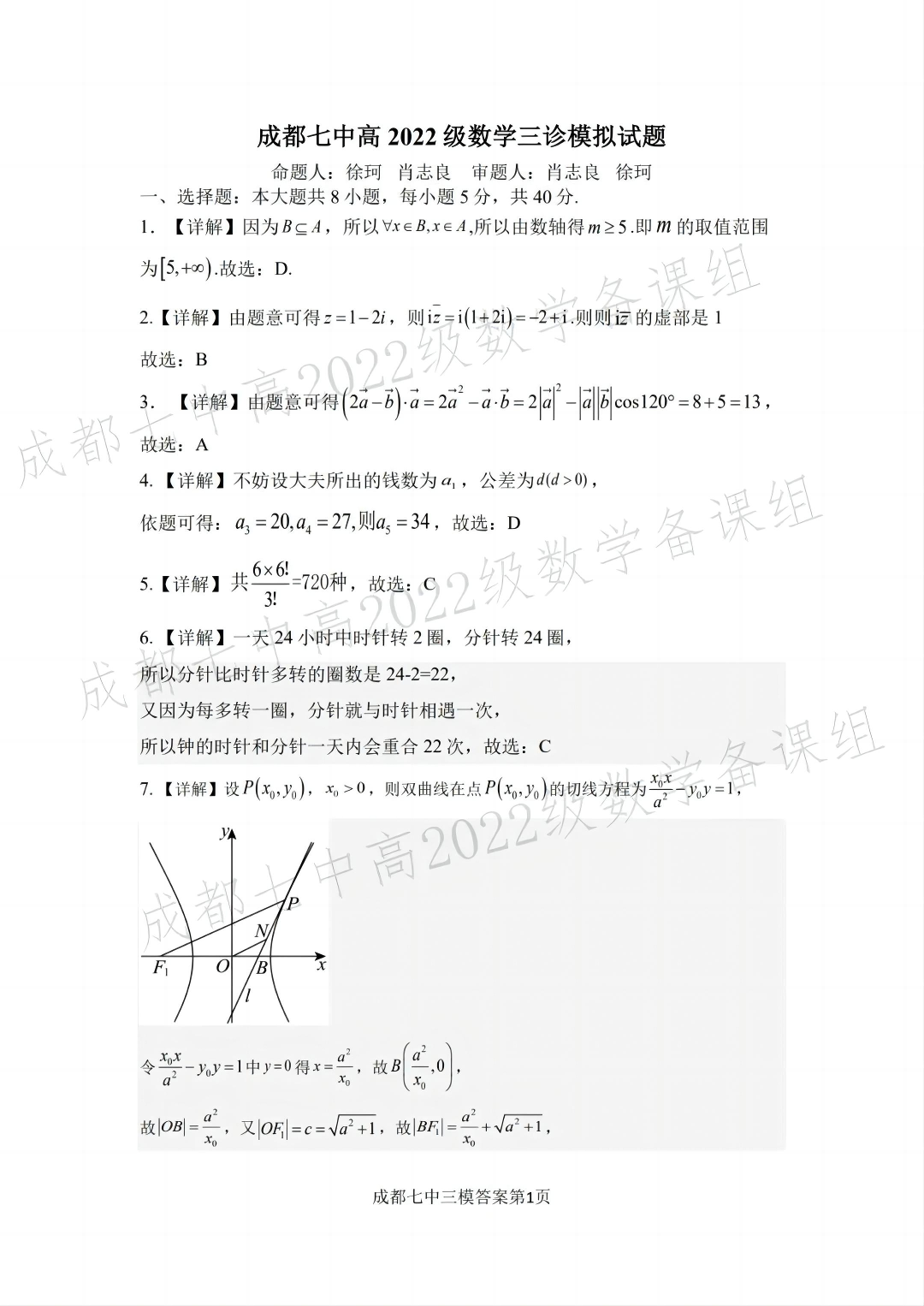 四川省成都市第七中学2024~2025学年度下期高2025届三诊模拟考试 数学答案.pdf