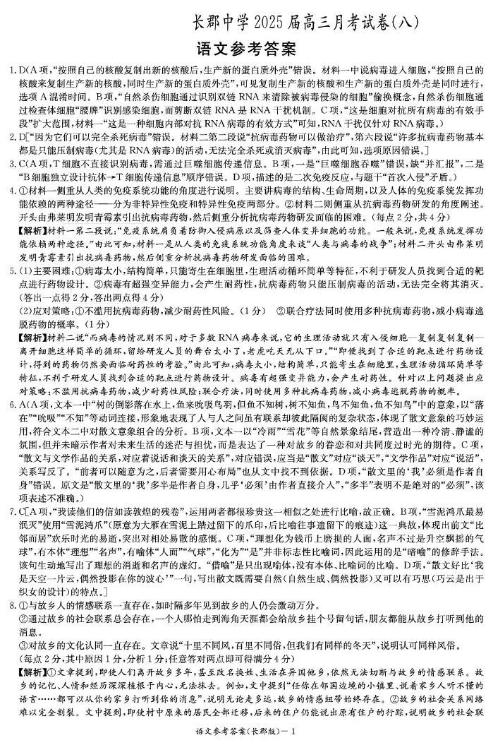 湖南省长郡中学2025届高三月考试卷(八)语文答案.pdf