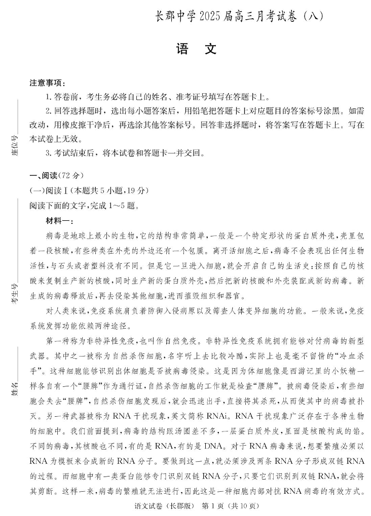 湖南省长郡中学2025届高三月考试卷(八)语文.pdf