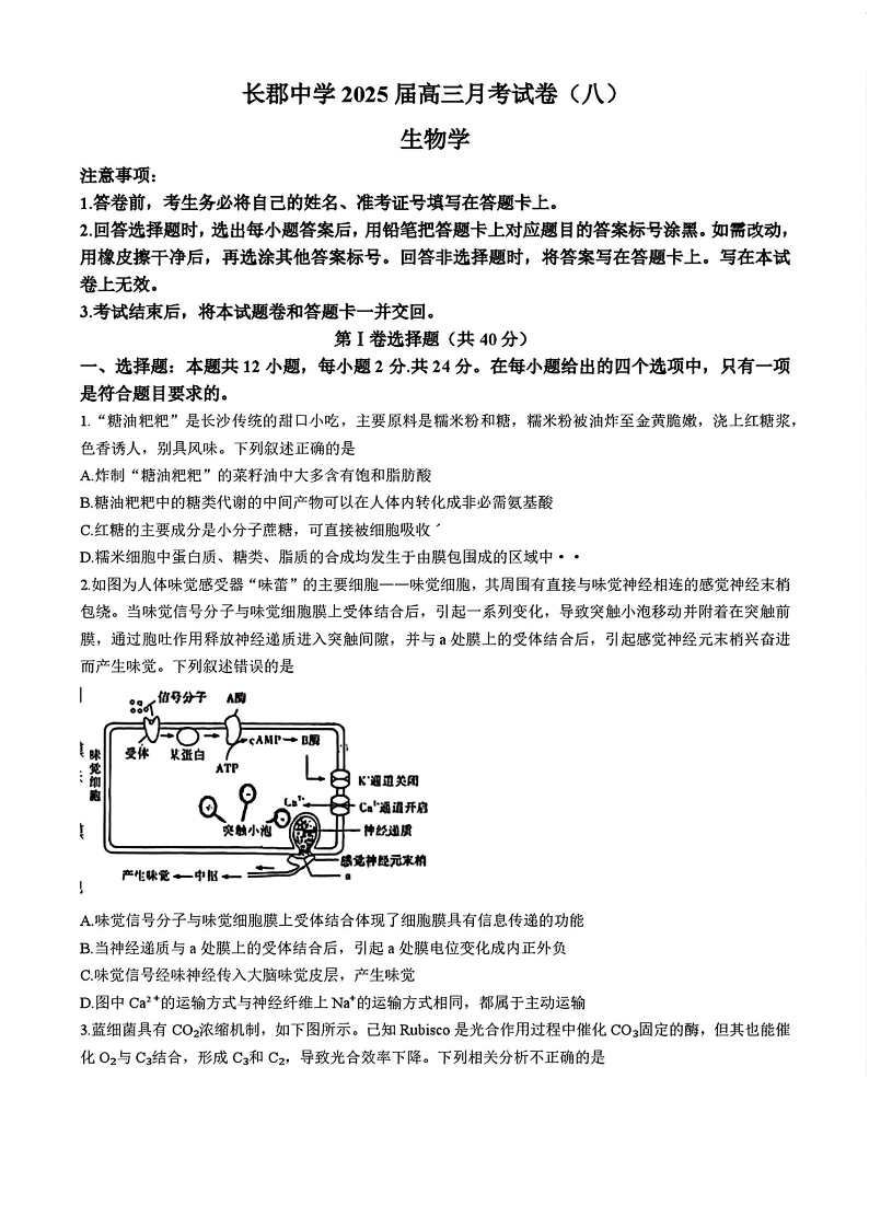 湖南省长郡中学2025届高三月考试卷(八)生物(含答案).pdf