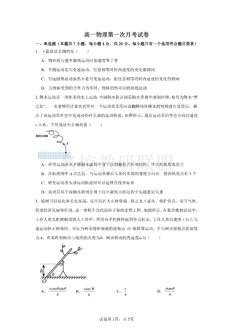 江西省赣州市赣州中学2024-2025学年高一下学期第一次月考 物理(含答案).pdf