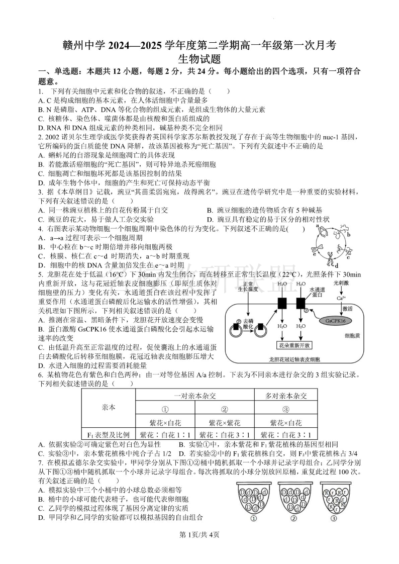 江西省赣州市赣州中学2024-2025学年高一下学期第一次月考 生物(含答案).pdf