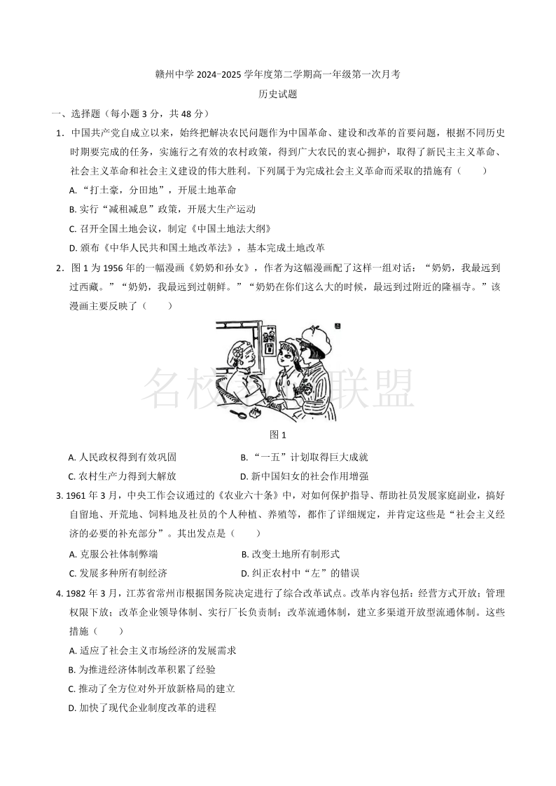 江西省赣州市赣州中学2024-2025学年高一下学期第一次月考 历史(含答案).pdf