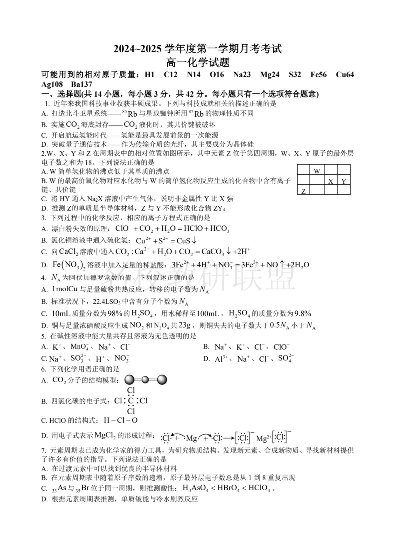 江西省赣州市赣州中学2024-2025学年高一下学期第一次月考 化学(含答案).pdf