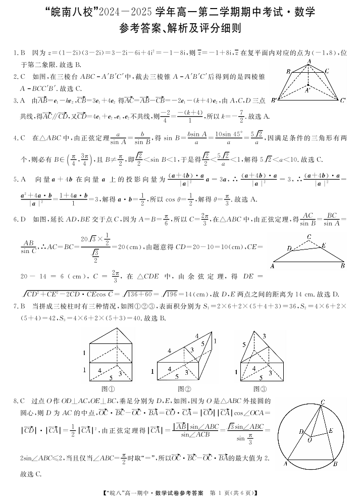 “皖南八校”2024-2025学年高一第二学期期中考试-数学答案.pdf