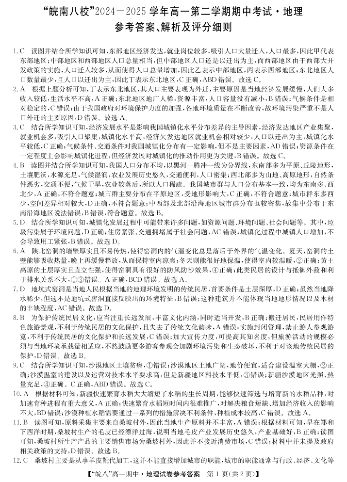 “皖南八校”2024-2025学年高一第二学期期中考试-地理答案.pdf
