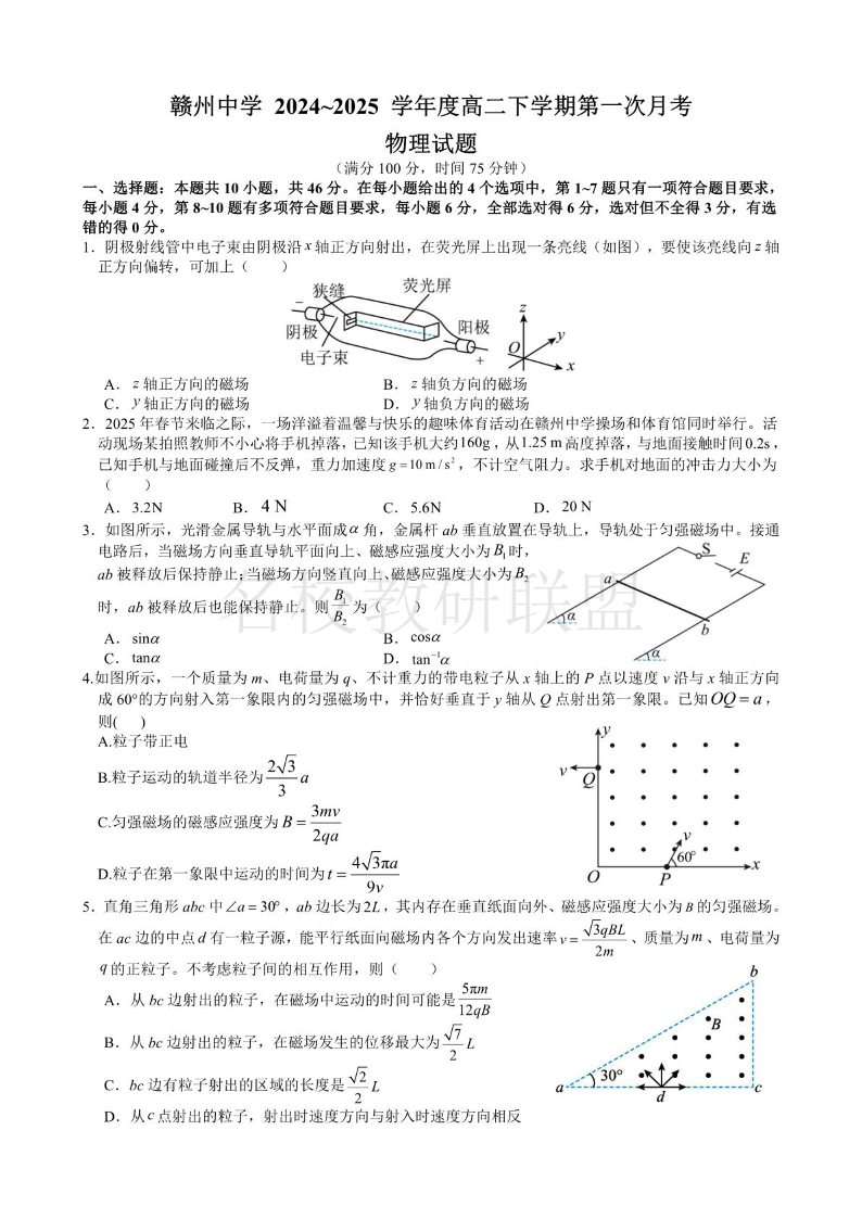 江西省赣州中学2024-2025学年高二下学期第一次月考试题 物理(含答案).pdf