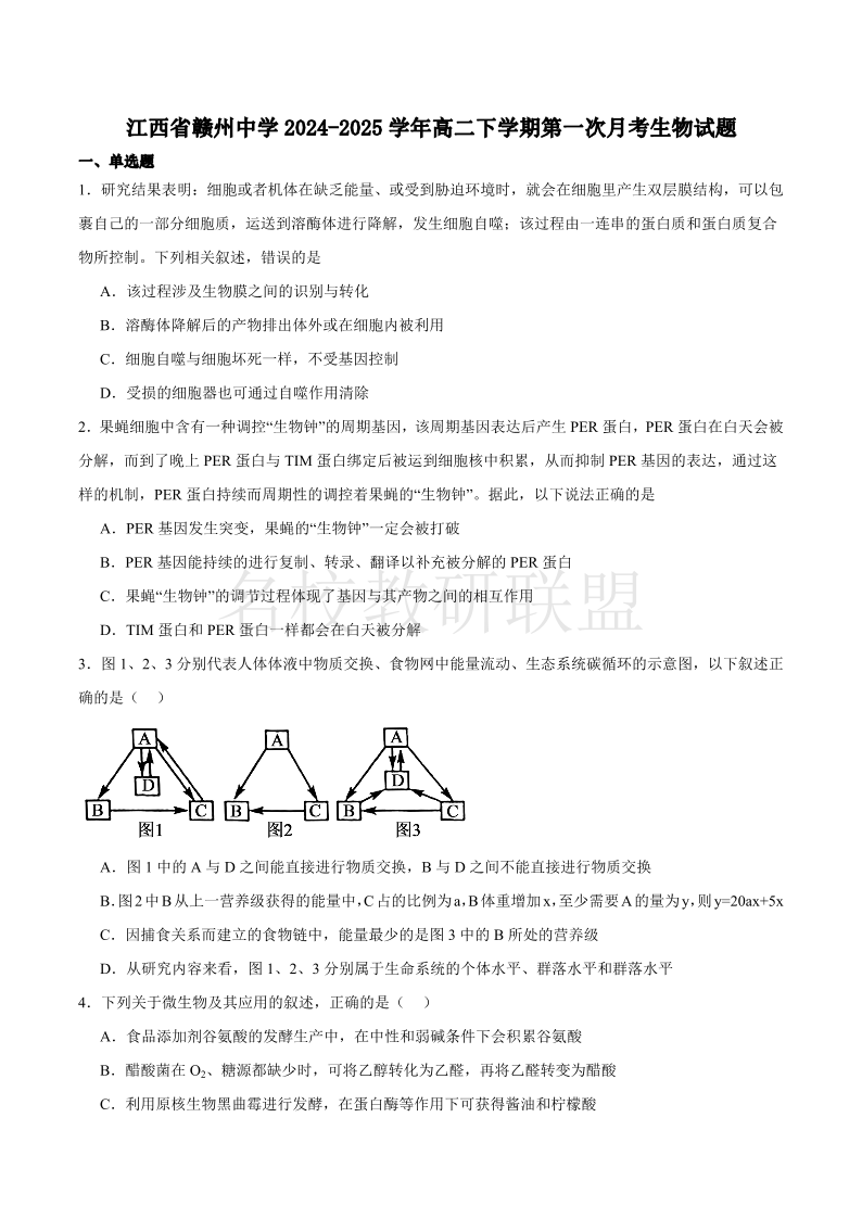 江西省赣州中学2024-2025学年高二下学期第一次月考试题 生物(含答案).pdf