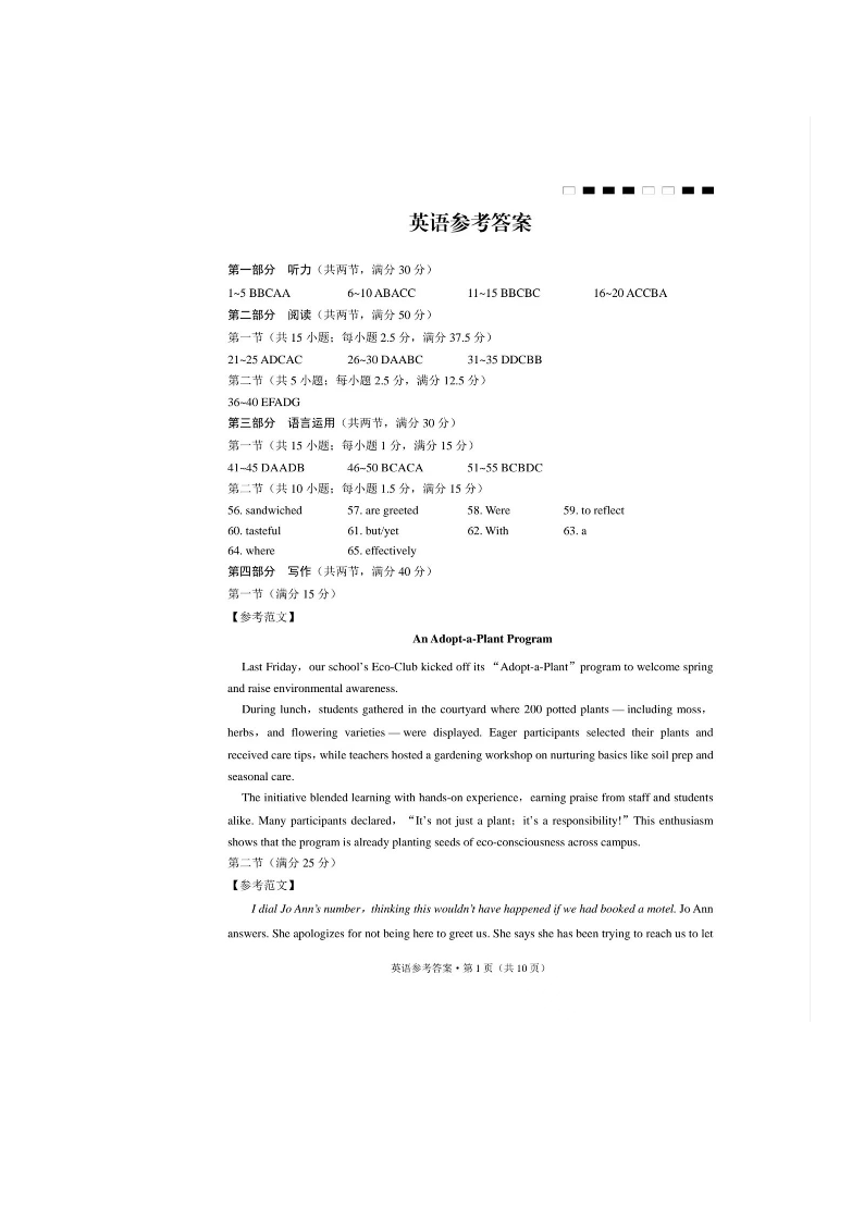 包头市2025年高三第二次模拟考试 英语答案.pdf