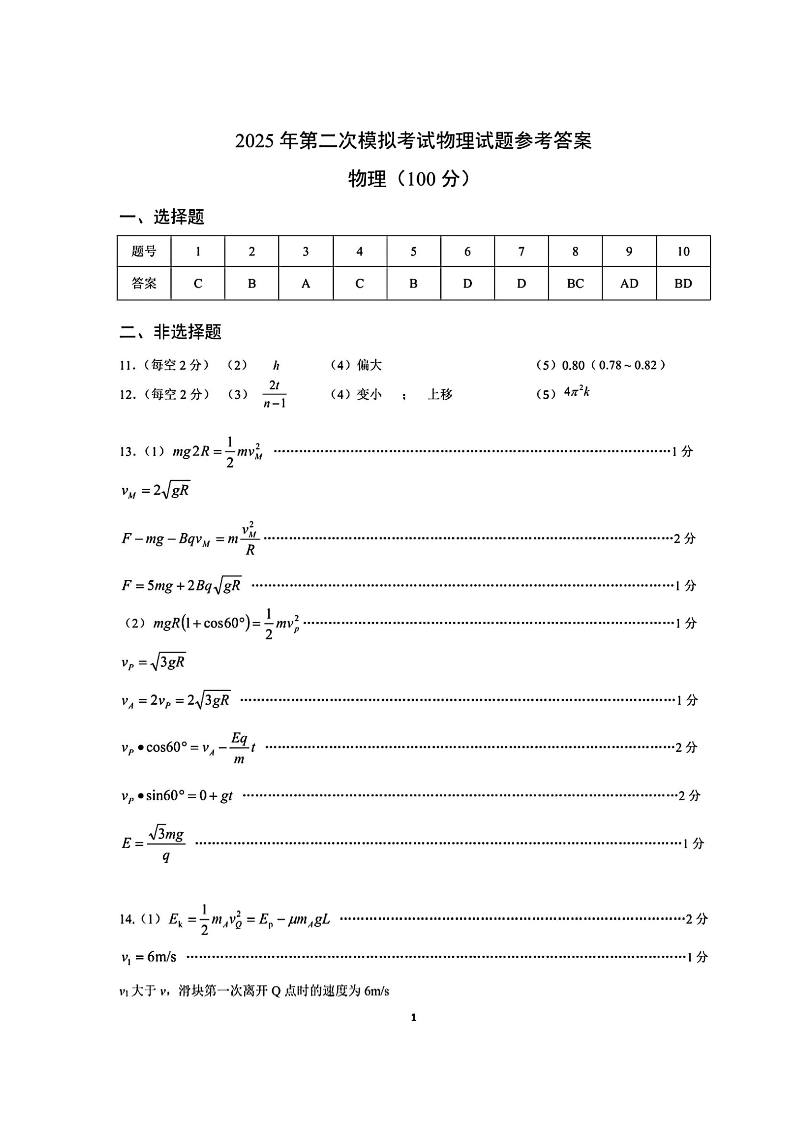 包头市2025年高三第二次模拟考试 物理答案.pdf