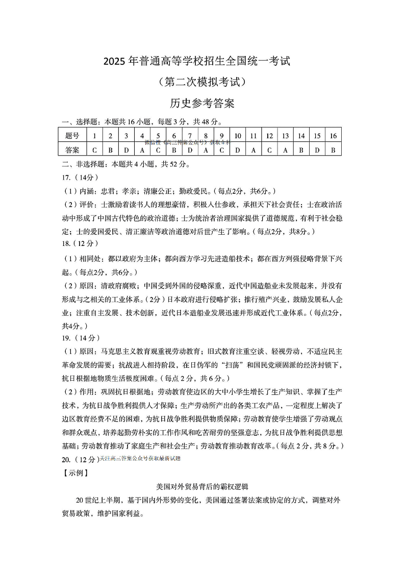包头市2025年高三第二次模拟考试 历史答案.pdf