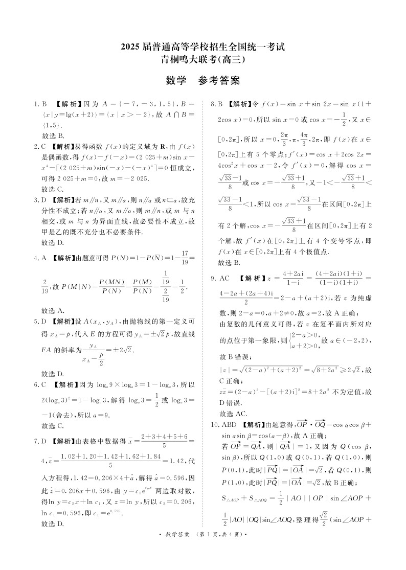 河南省青桐鸣2025届高三4月大联考 数学答案.pdf