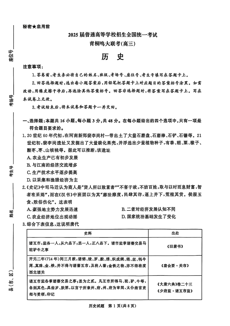 河南省青桐鸣2025届高三4月大联考 历史.pdf
