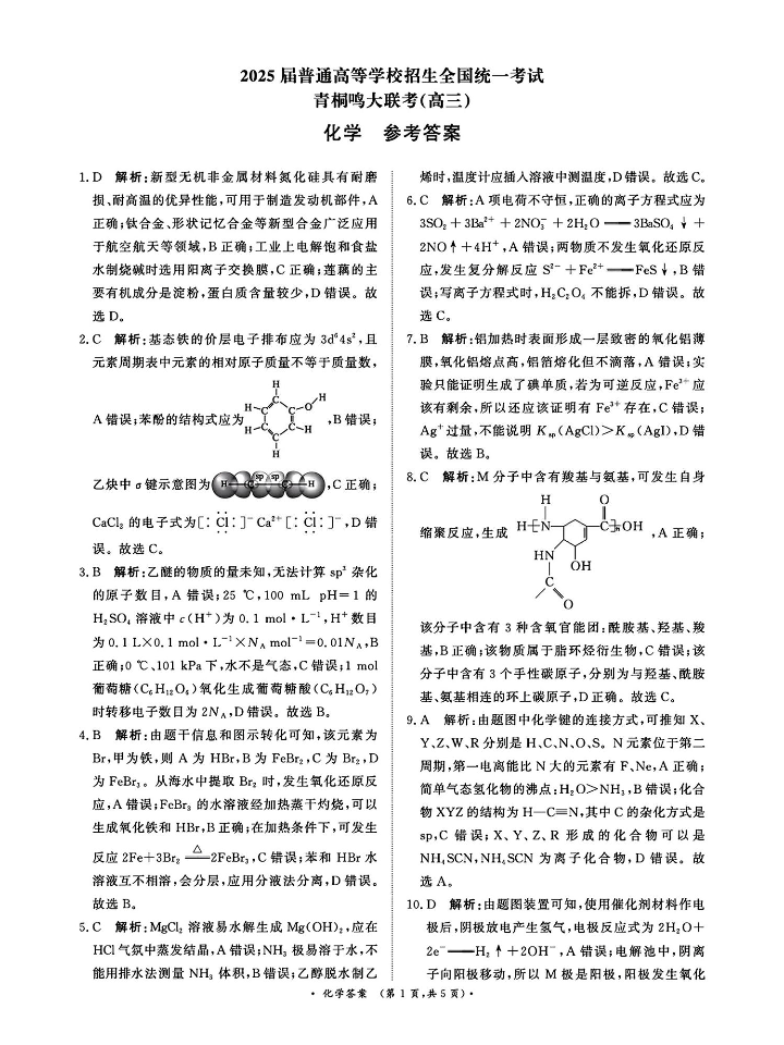 河南省青桐鸣2025届高三4月大联考 化学答案.pdf