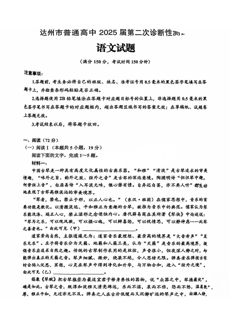 达州市普通高中2025届第二次诊断性测试 语文.pdf