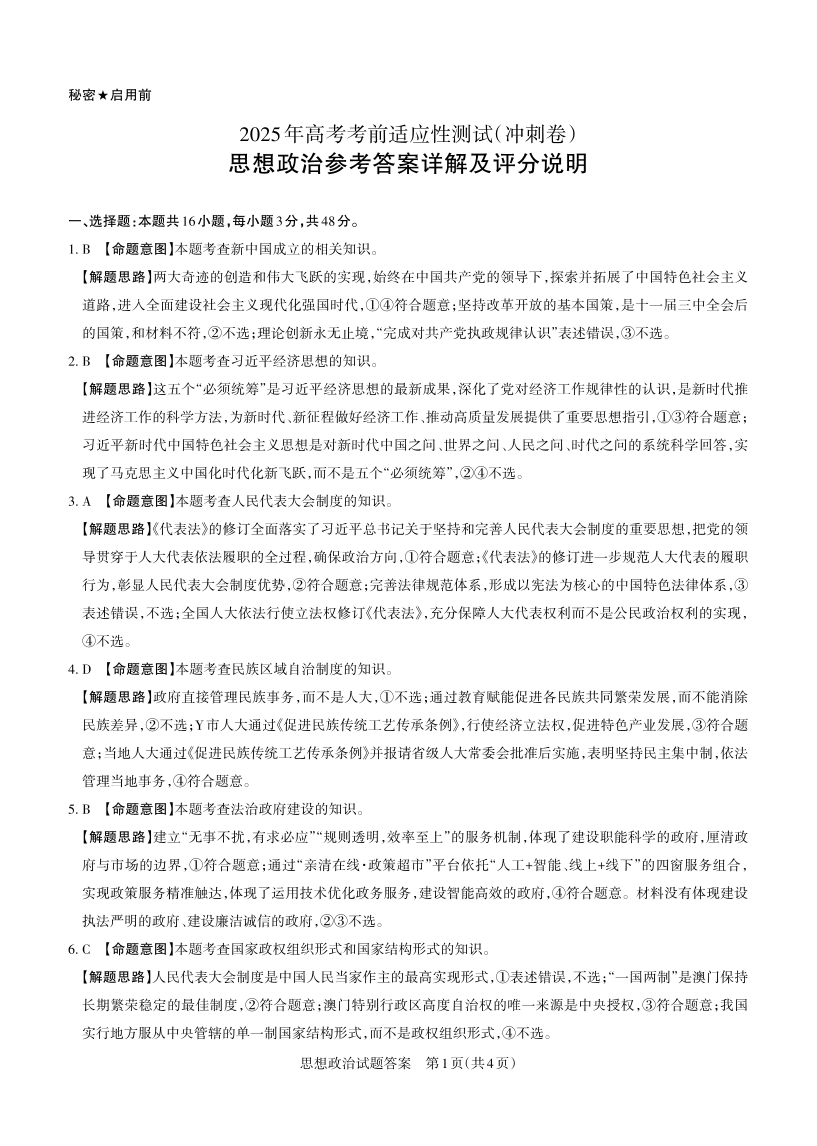 山西省思而行2025年高考考前适应性测试(冲刺卷)政治答案.pdf