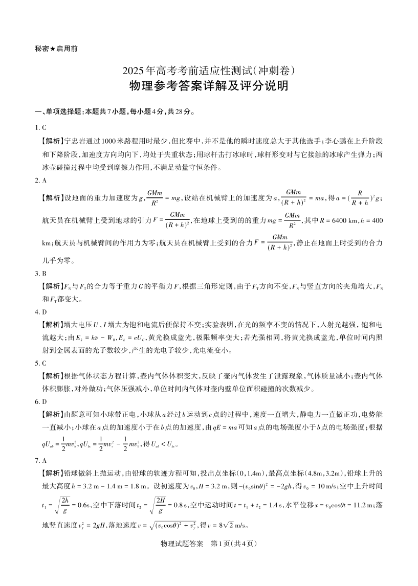 山西省思而行2025年高考考前适应性测试(冲刺卷)物理答案.pdf