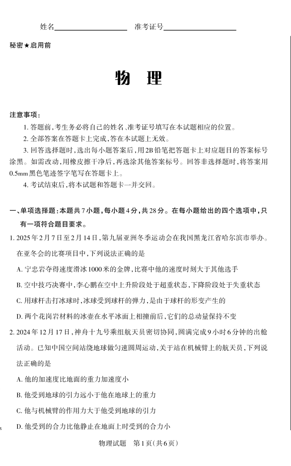 山西省思而行2025年高考考前适应性测试(冲刺卷)物理.pdf
