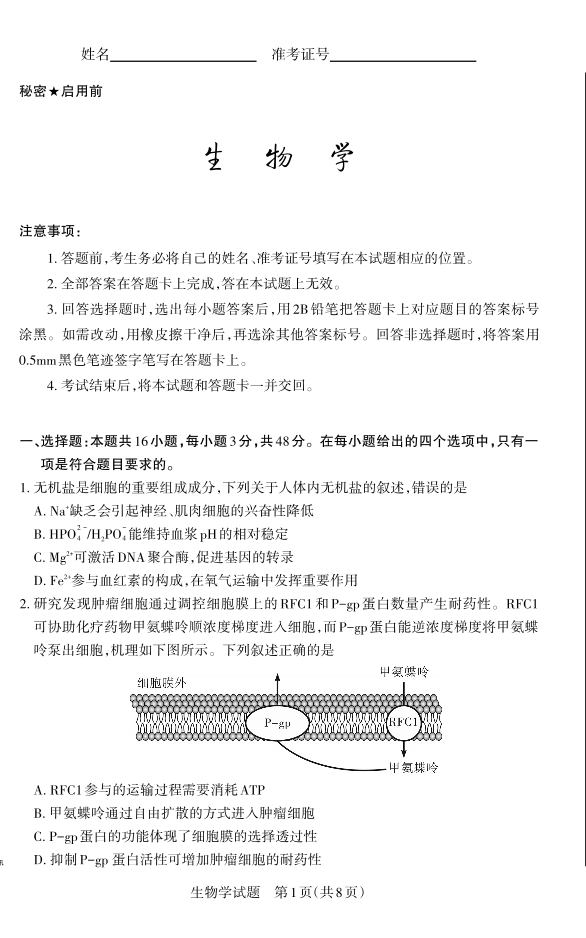 山西省思而行2025年高考考前适应性测试(冲刺卷)生物.pdf