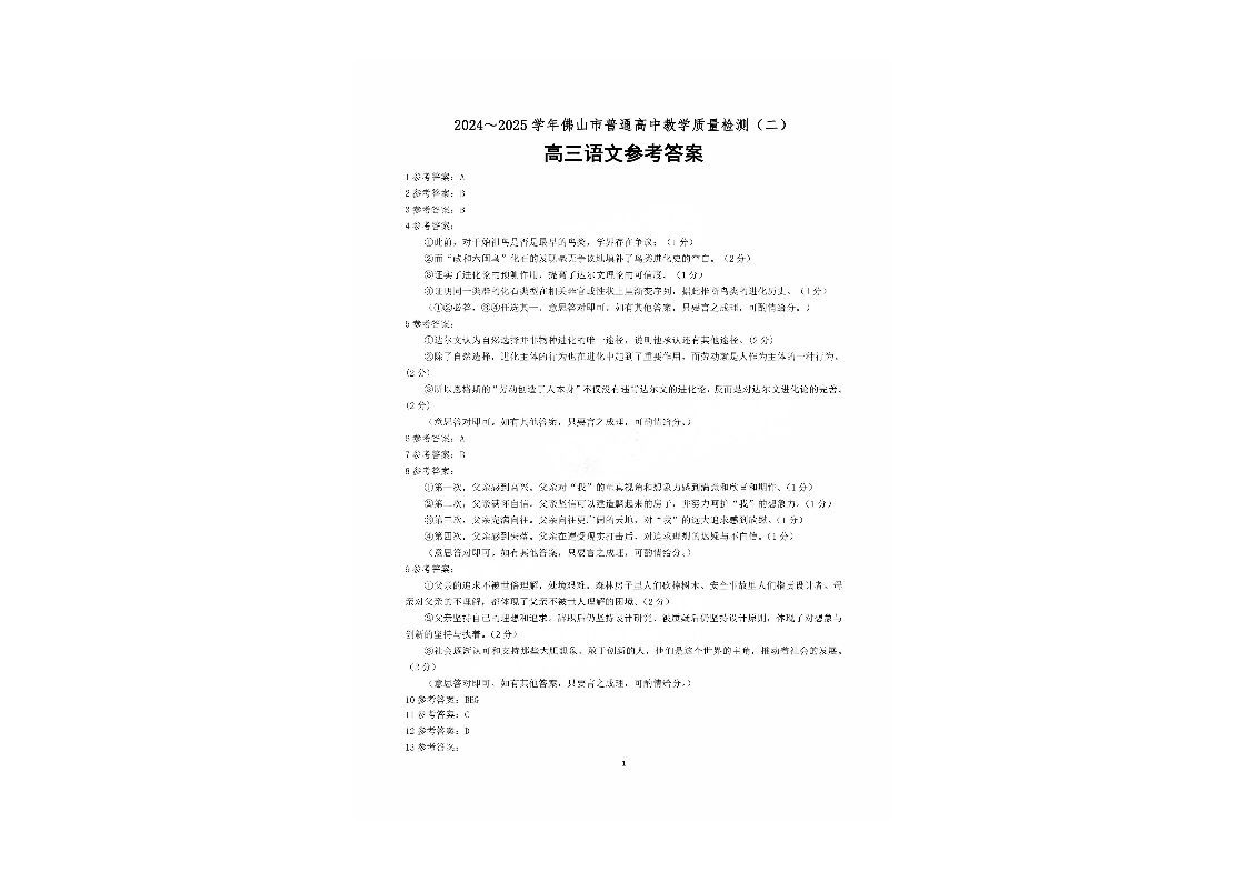 广东省2024-2025学年佛山市普通高中教学质量检测(二)语文答案.pdf