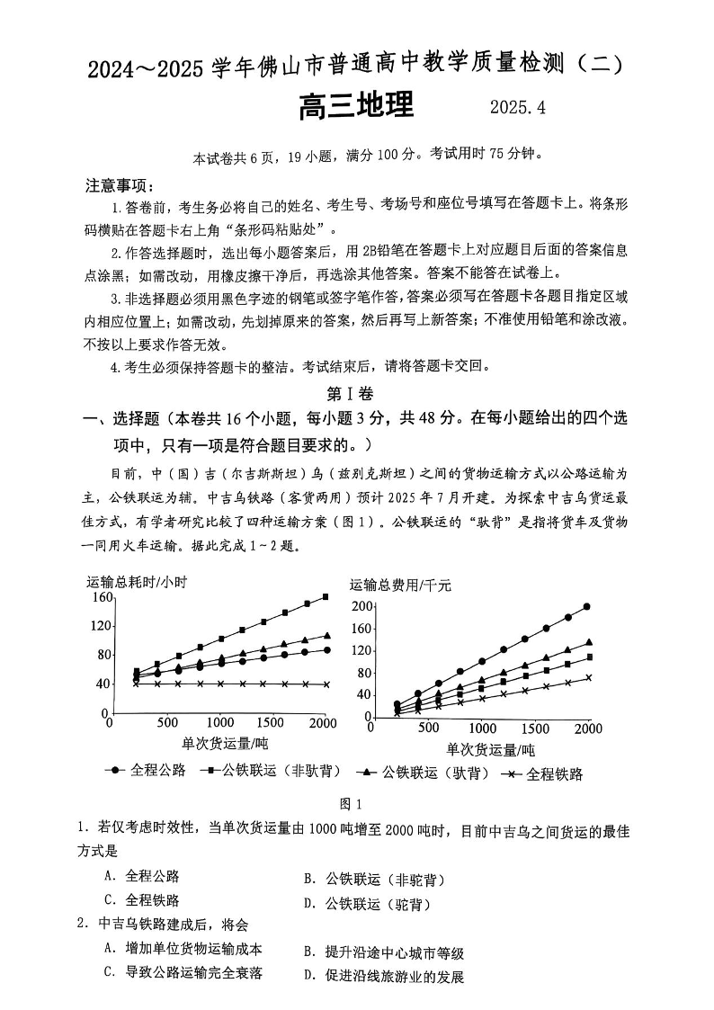 广东省2024-2025学年佛山市普通高中教学质量检测(二)地理.pdf