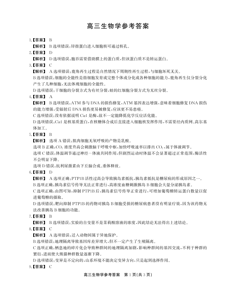 安徽省鼎尖教育2025届高三逐梦杯实验班大联考 生物答案.pdf