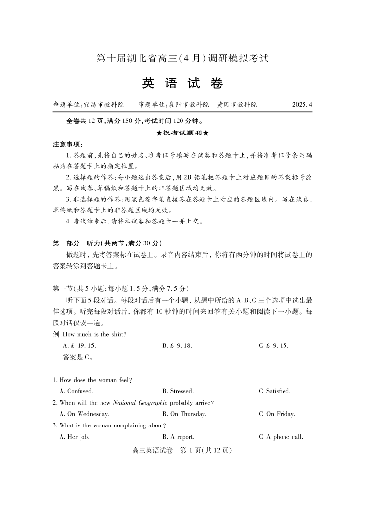 第十届湖北省高三(4月)调研模拟考试 英语.pdf