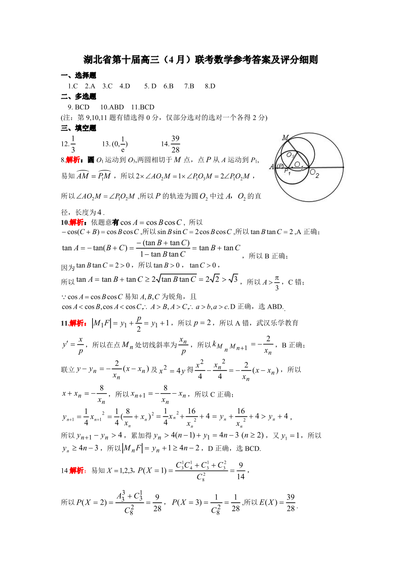 第十届湖北省高三(4月)调研模拟考试 数学答案.pdf